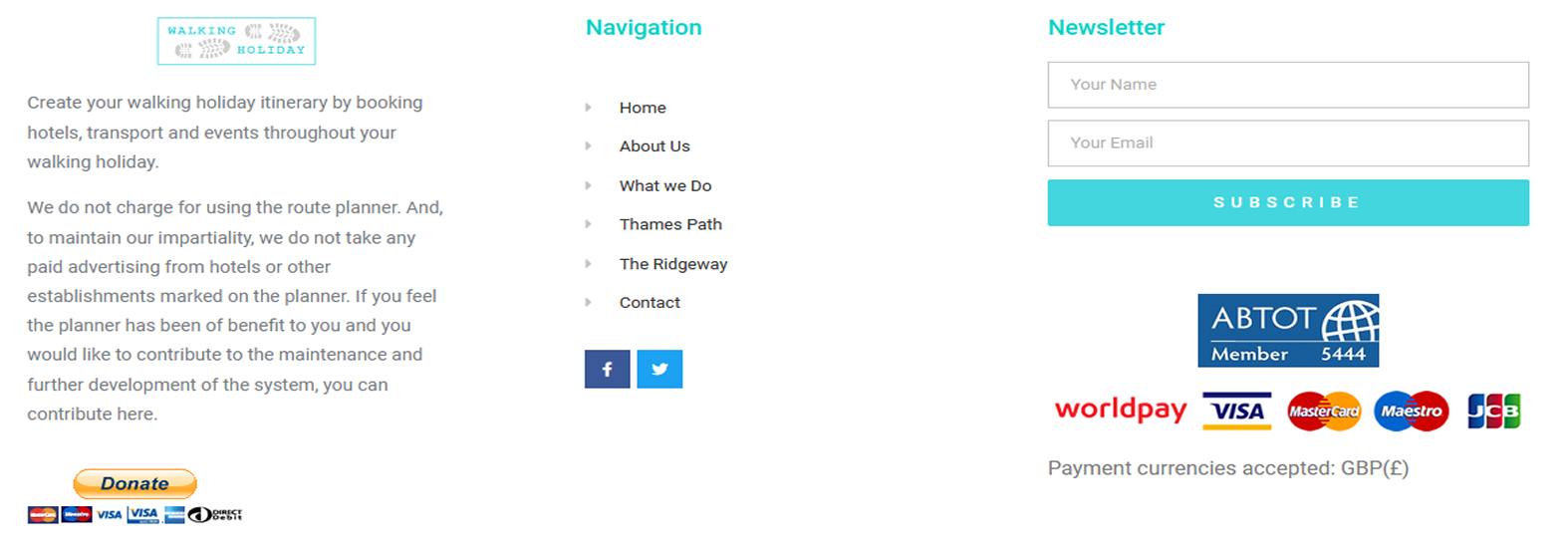 The route planner allows you to select your starting point and choose your accommodation each night until you reach your desired final destination. It will tell you distances (in miles) of each place as well as distance from the path to the accommodation. Detailed guidance can be found on our How It Works page.